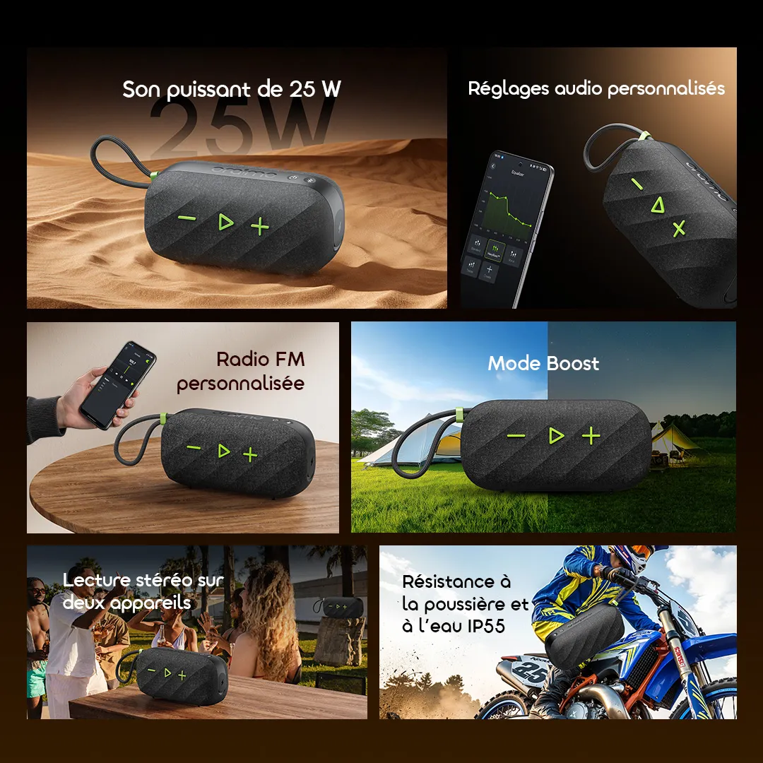 Autonomie : 7 heures (volume maximal), 14 heures (volume moyen)